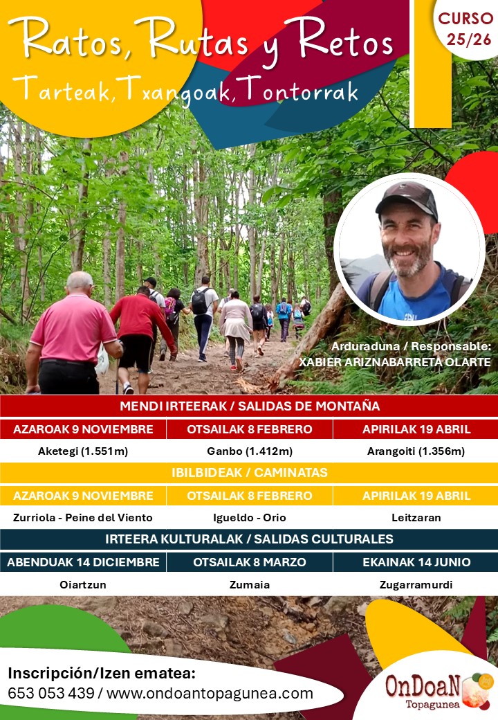 Otsailaren 8an, igandea, hiruhileko honetarako programatutako mendi-irteera eta ibilaldia izango dira. Antolaketa errazteko, izena ematea nahitaezkoa izango da. Denok zaude gonbidatuta konpainia onean goiz-pasa polit bat igarotzera!!