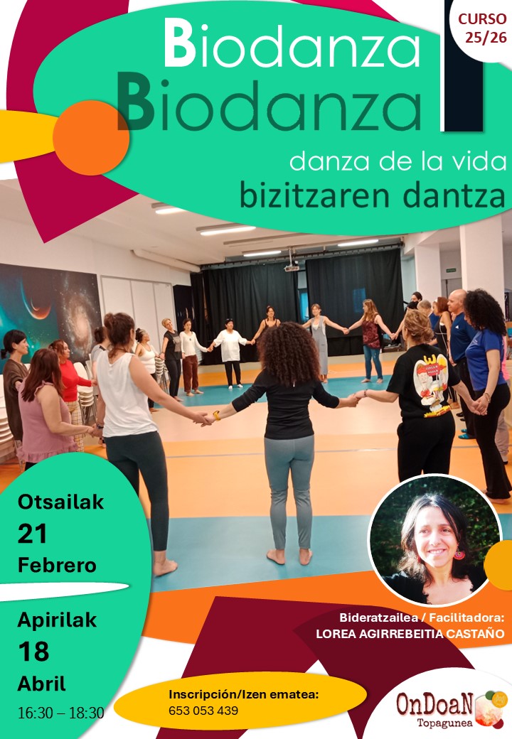 21ean, 16:30etan, ikasturte honetarako programatutako bi biodantza talilerretako lehenengoa izango da. Irekia eta doakoa da parte hartu nahi duten guztientzat. Nahitaezkoa da izena ematea.