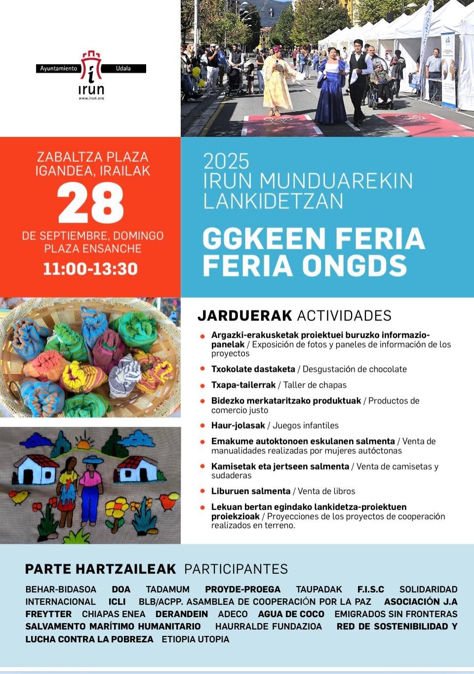 Gaur, urriaren 28an, Irungo Udalak antolatutako GGKEen azokan izan gara. Urtez urte, hiriko bihotzean elkartasuneko hainbat erakunde biltzen dituen topaketa da.