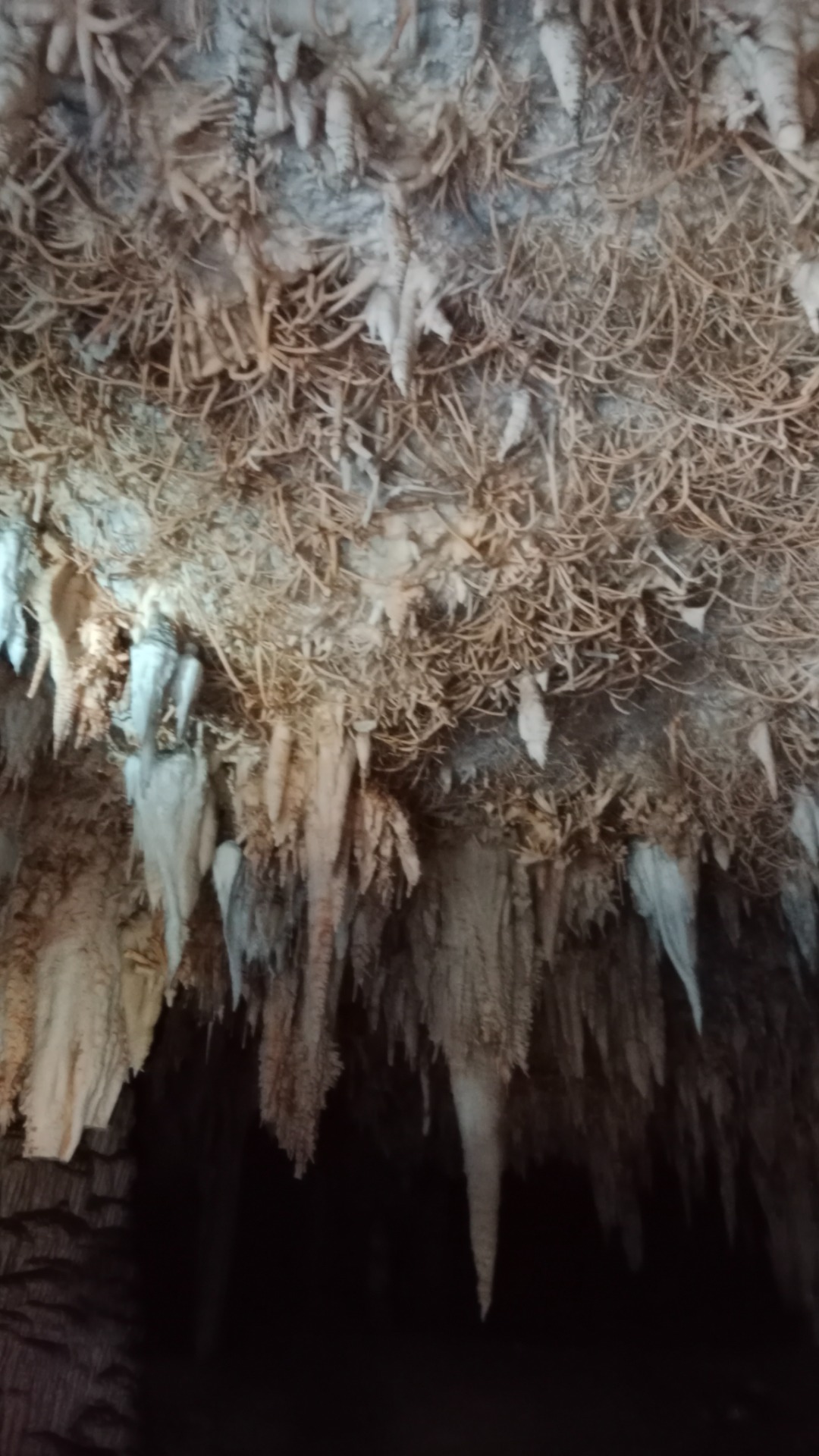 Hemos podido disfrutar de una colección impresionante de estalactitas excéntricas que hacen que esta cueva sea única. Son espectaculares los techos que el agua, con la paciencia de millones de años, va esculpiendo aquí, formando figuras realmente curiosas que desafían las leyes de la gravedad.