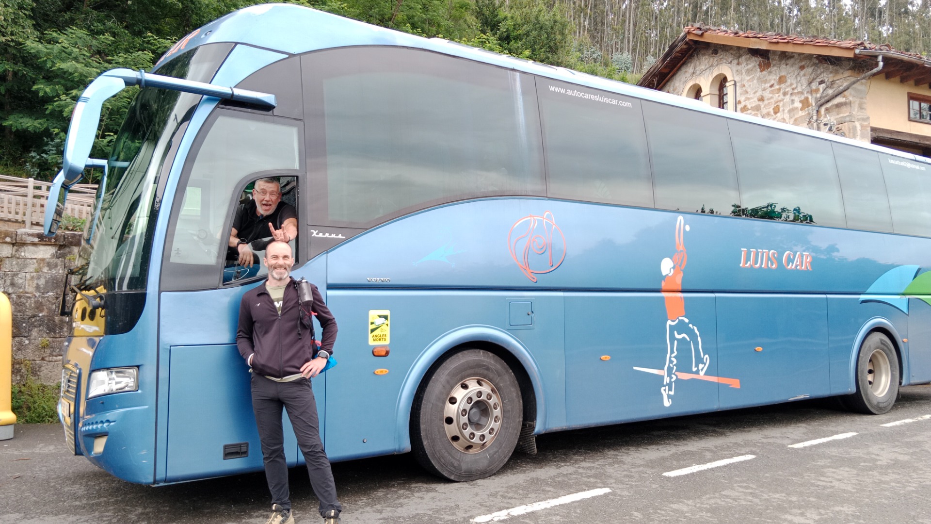 En el día de hoy, será Emilio quien, otra vez, se encargue de conducir el bus que nos va a llevar de viaje. Como el día ha amanecido lluvioso, nos hemos tenido que guarecer en el garaje mientras iban llegando los miembros de la expedición.